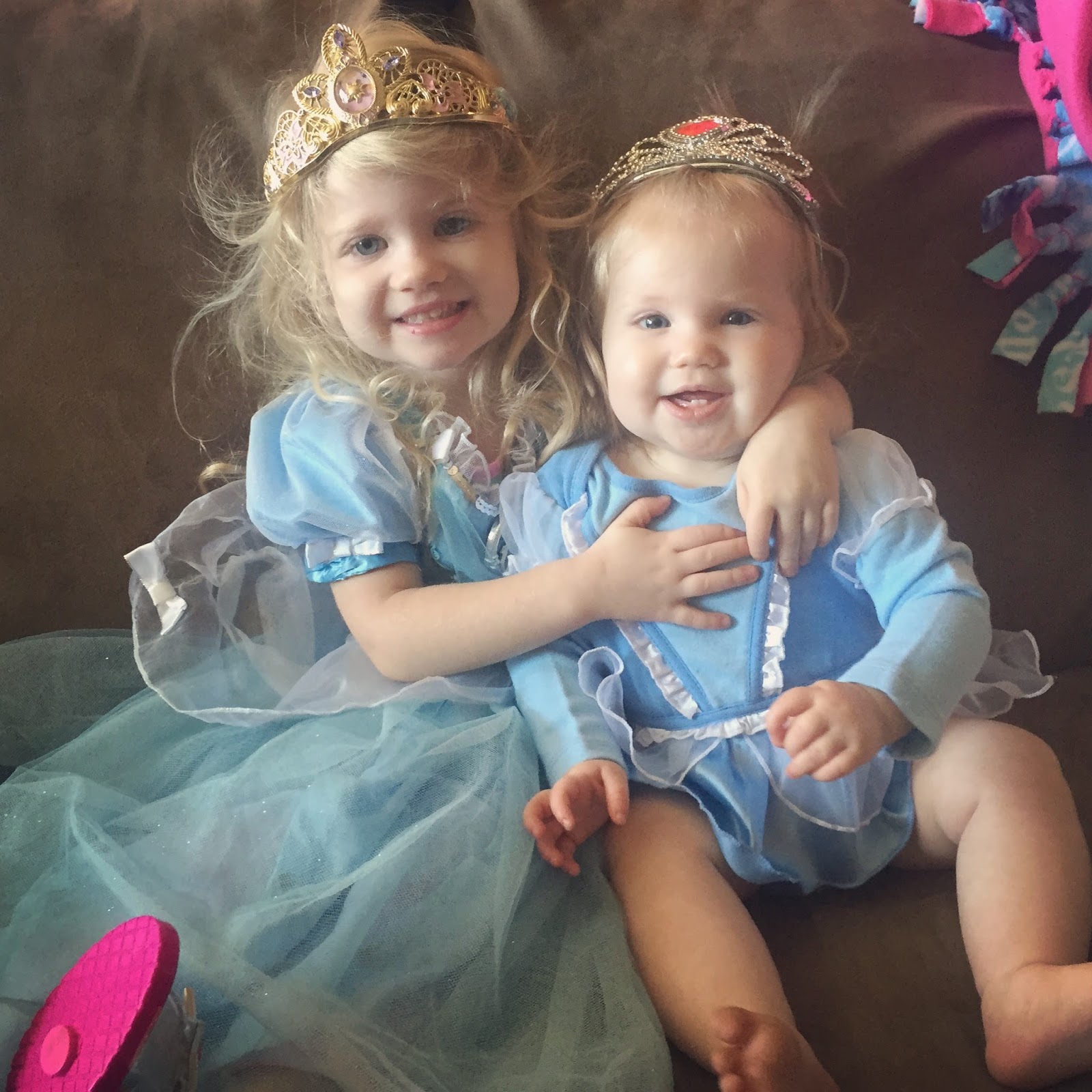 On this day Raley wanted Audrey to dress up like Cinderella too. Pretty little Princesses! |