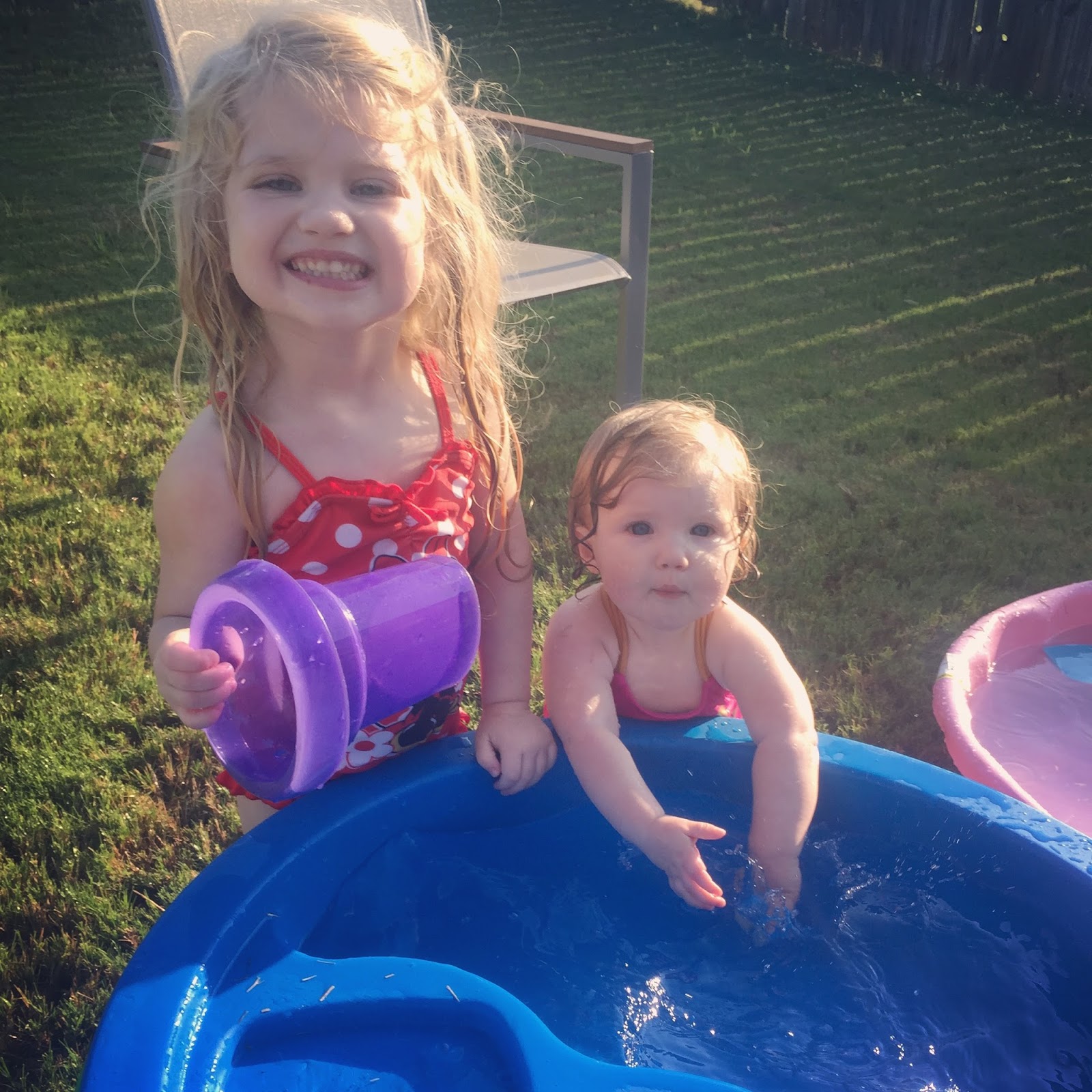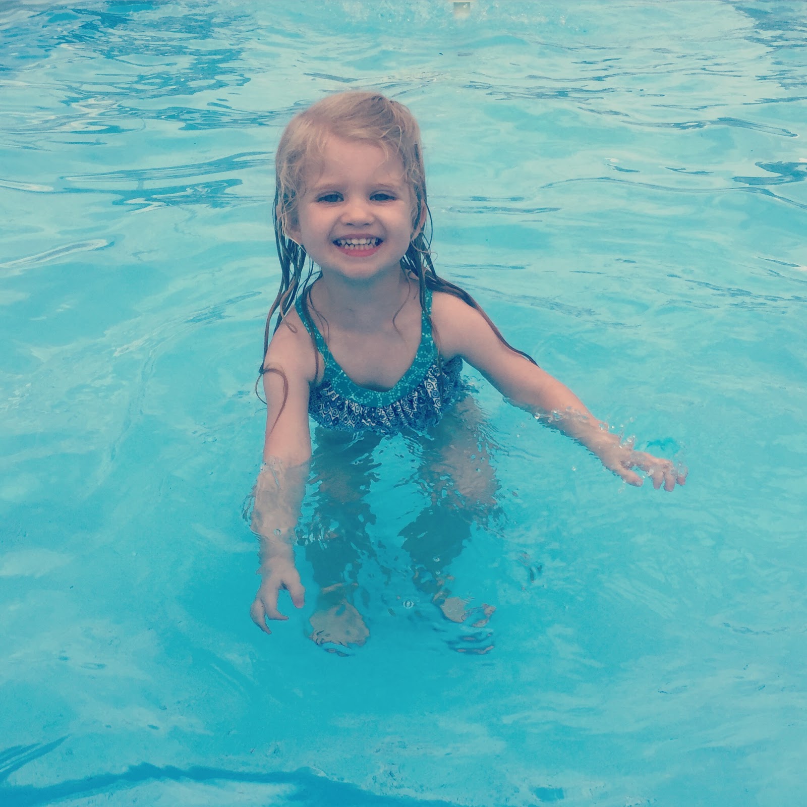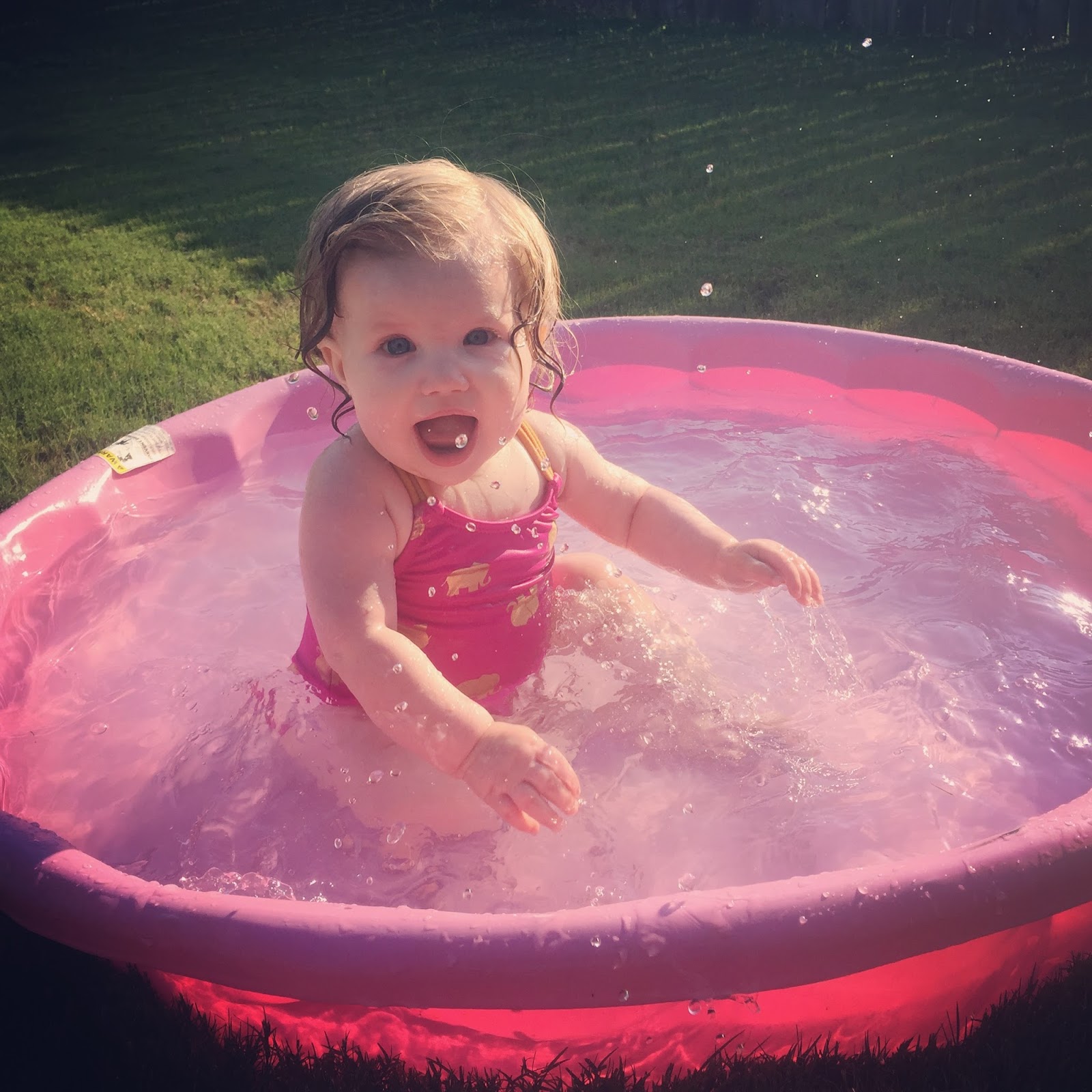 Raley at my parents’ neighborhood pool. She (and I) like the kiddie pool the best because she can touch. |