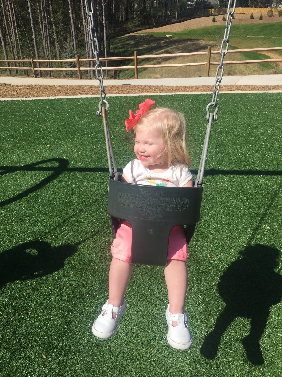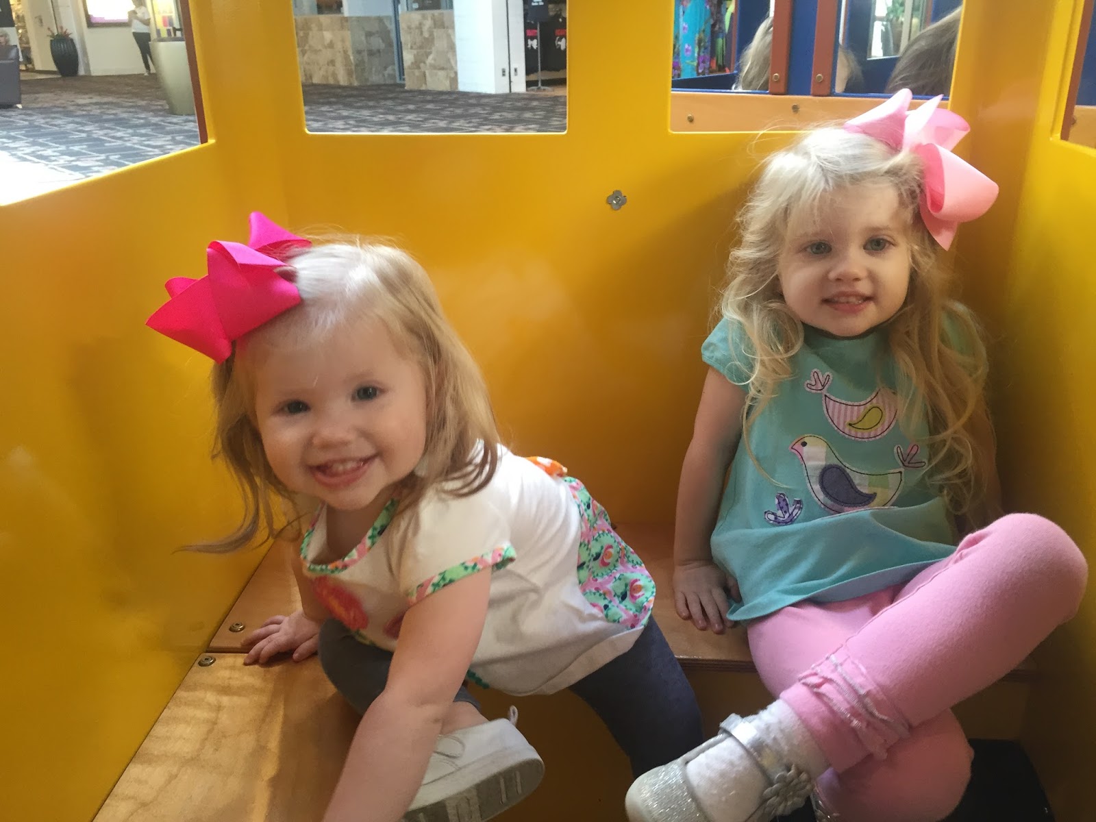 We love to go to Chic-fil-a to eat and then let the girls run off a little energy in the play area. This area is better suited for Raley’s age (3) than Audrey’s, but Audrey is usually content to sit and play at the table with me. This is a great place to meet friends and sit and chat while our kids run around.