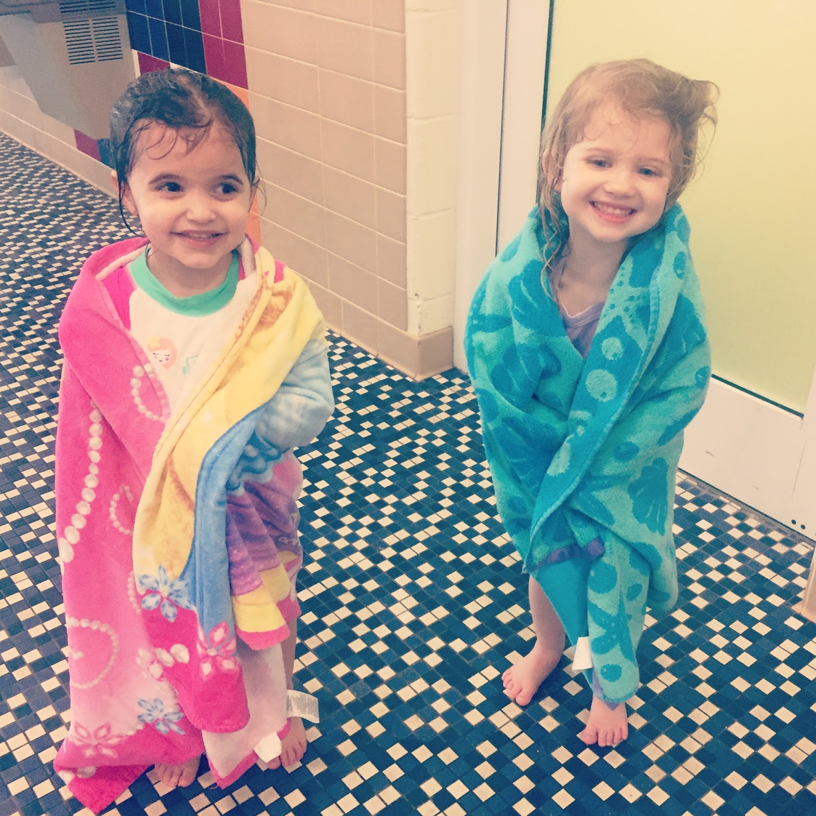 Raley and her friend Ann-Elise at a birthday party at the Y |