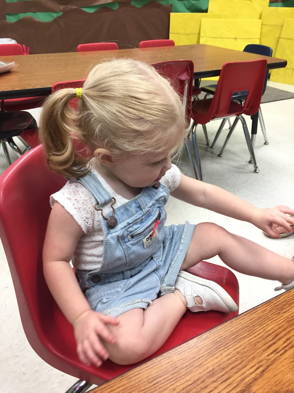 After swim lessons we went home and Audrey took a nap. I knew Raley wouldn’t get a full nap in before VBS so I let her have “rest time” on the couch while watching a movie. If Raley is not able to get a nap, I like to have her lay down and “rest” for at least an hour. This allows her to slow down and recharge and usually helps with the fussiness later in the day. (It allows me to rest as well.)
