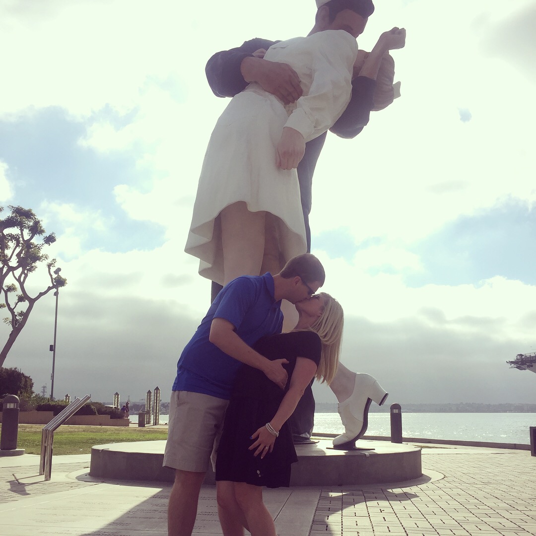 After seeing all we could see on board we had a little time to kill before the 6:00 ferry to Coronado Island. We walked over to see the big statue of the famous picture of the sailor kissing the nurse. David talked me into taking a picture mimicking the statue.