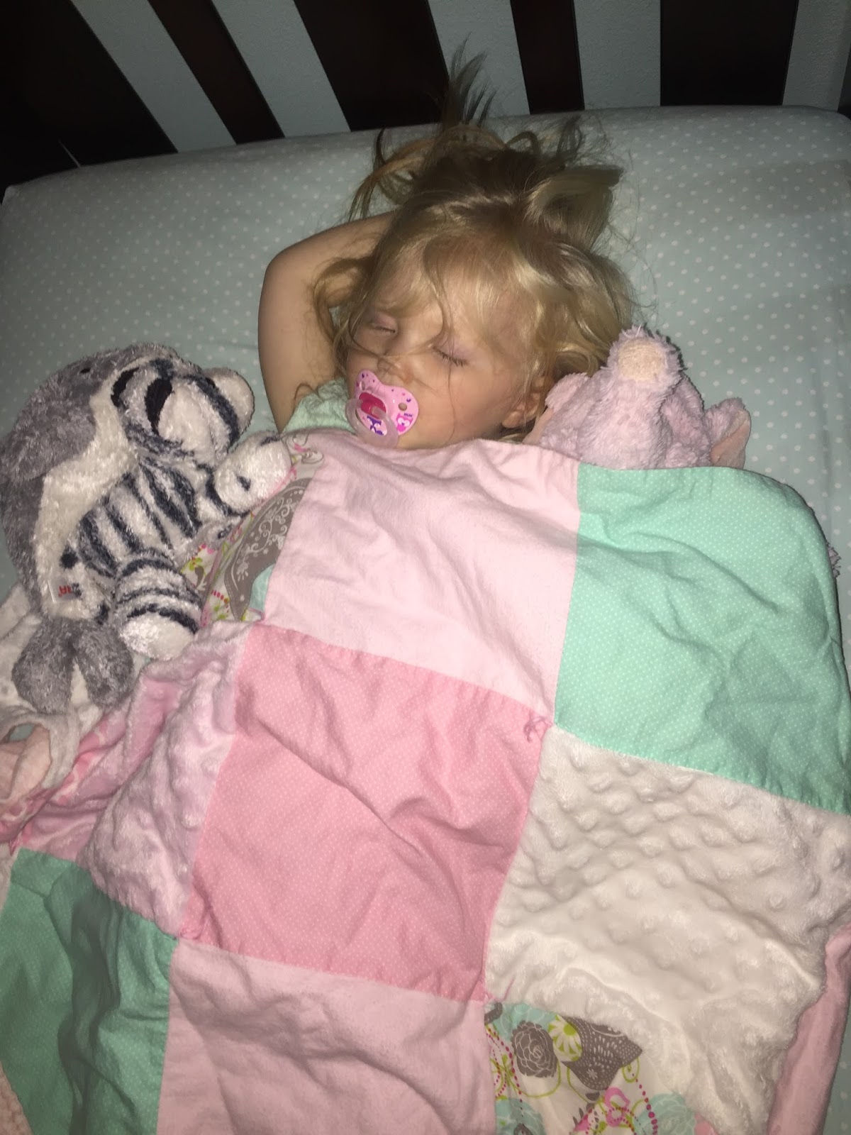 Audrey passed out on the way home and didn’t even open her eyes when I got her out of her car seat and laid her down.