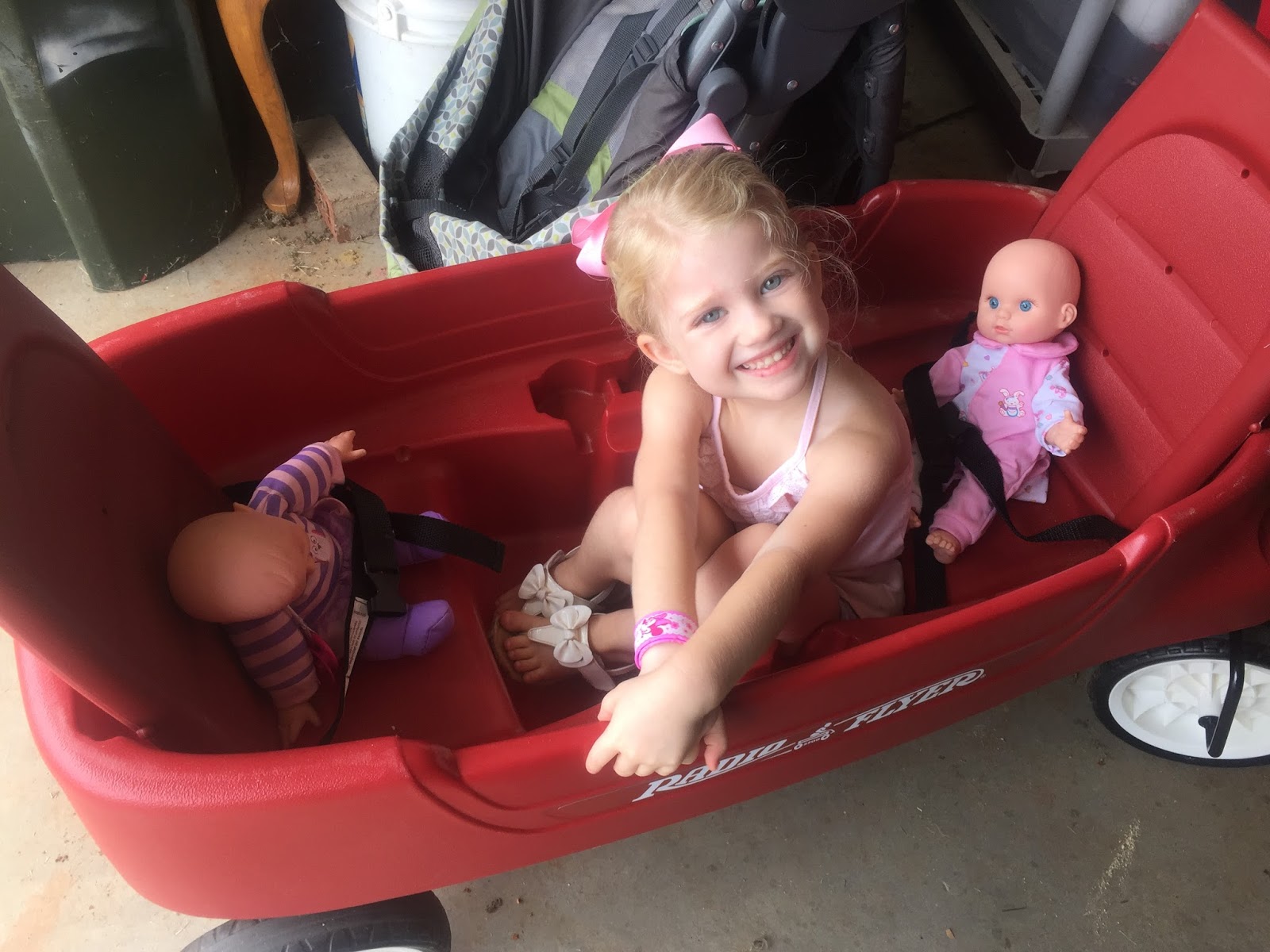 While I was putting Audrey in the car, Raley buckled her babies into the wagon and said “Mommy, take a picture of me and my babies!” I love this sweet, innocent stage she’s in. Although, just recently I feel like she’s becoming more of a “big girl” in the way that she smiles and talks. It makes me a little sad, but also very proud of her.