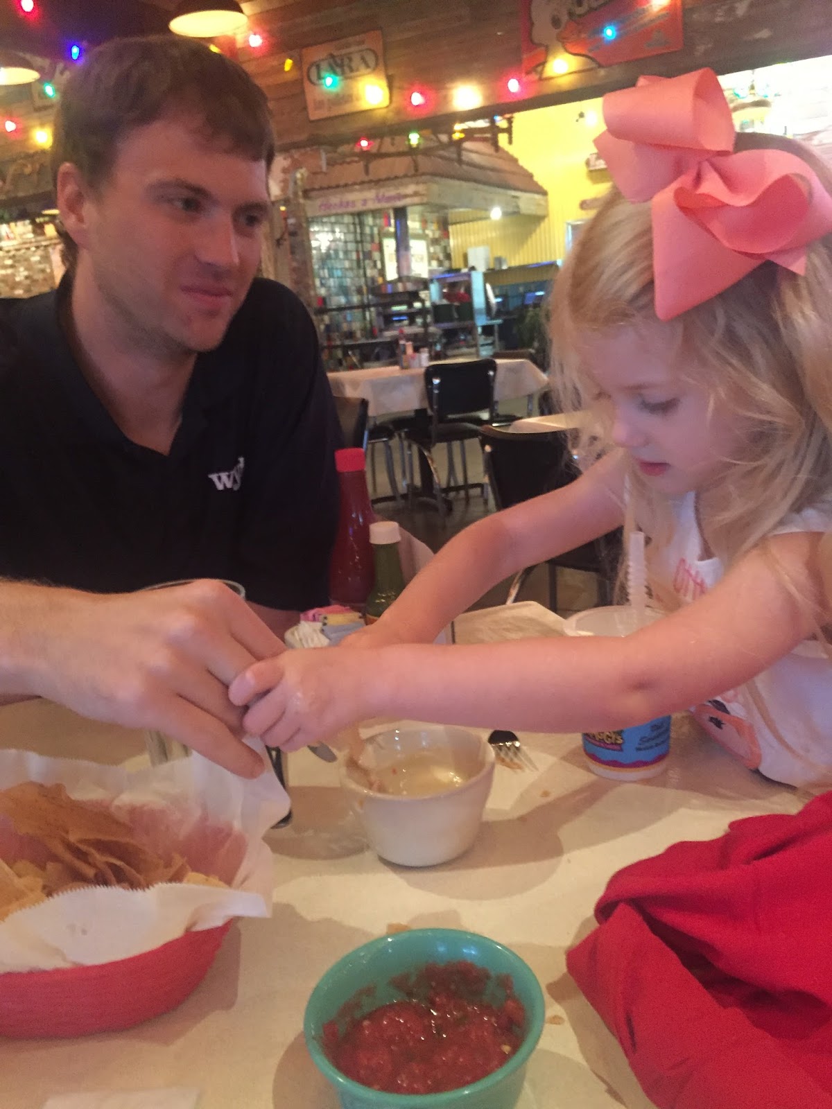 Once Audrey woke up from her nap we got ready to head out. I had to pick up my check and clothes that didn’t sell at one of our seasonal consignment sales between 4:00 and 7:00. I went back and forth on what to do for dinner since by the time we got back to the house and I cooked dinner, we would be eating pretty late. We ultimately decided on going to Rosie’s, my favorite local Mexican restaurant. David even said it sounded really good, so that made the decision easy!