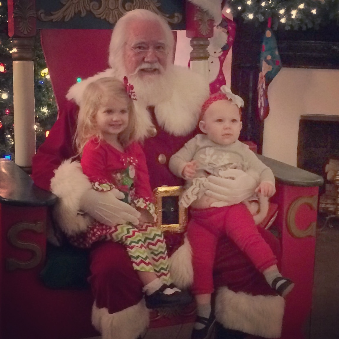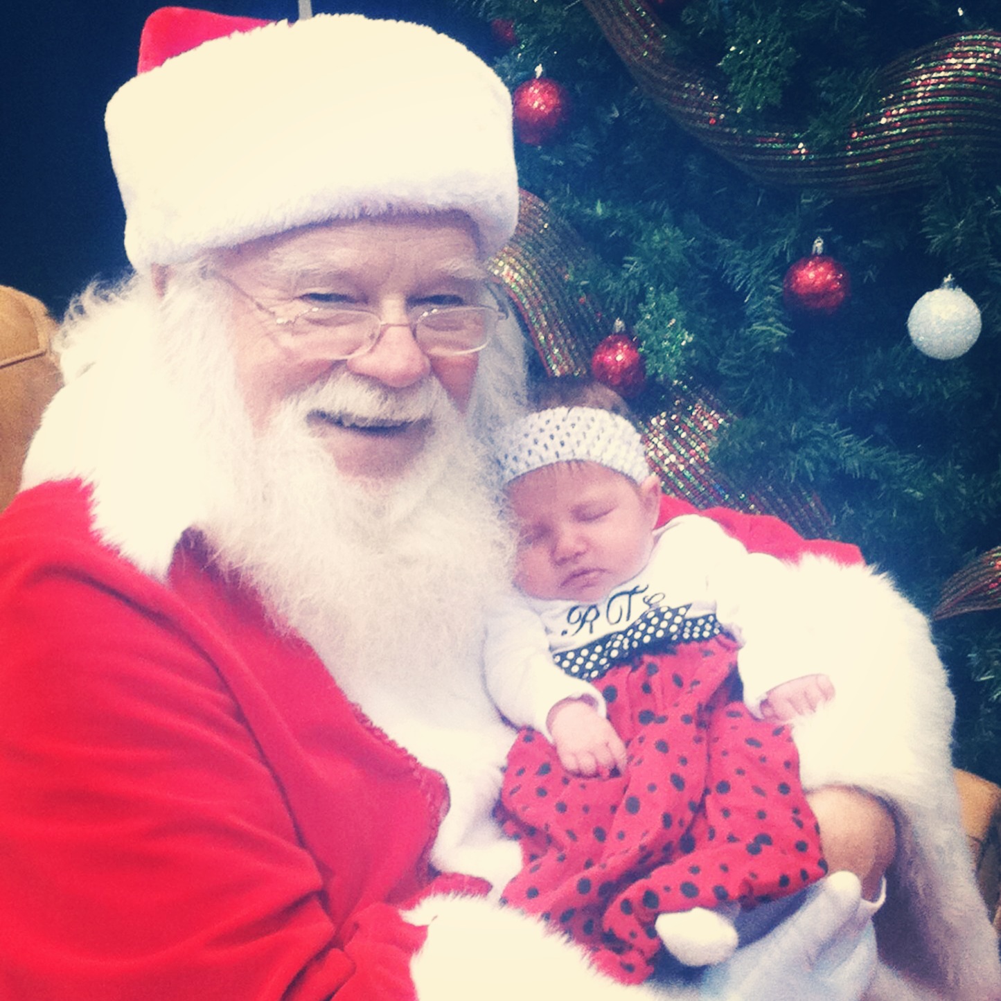 | Raley’s first picture with Santa at Under the Christmas Tree. How sweet is this! |