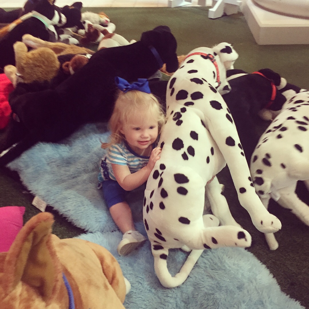 Over spring break we took the girls to Early Works Children’s Museum and decided to go ahead and get a membership. We found that if we were to visit Early Works just 3 times in a year that our membership would be paid for. Our plan is to go a few times this summer when it’s raining or we just don’t want to be outside in the heat. They are having the “Dog Days of Summer,” which are several different events and activities that involve dogs. As soon as you walk into the museum there is this huge tree with all these big stuffed dogs underneath of it and the girls LOVE these dogs! The dogs are without a doubt their favorite part of the museum. They hug the dogs, pick them up and line them up, lay them down and put them to sleep. It’s so funny. So I know that they will enjoy the “Dog Days of Summer”