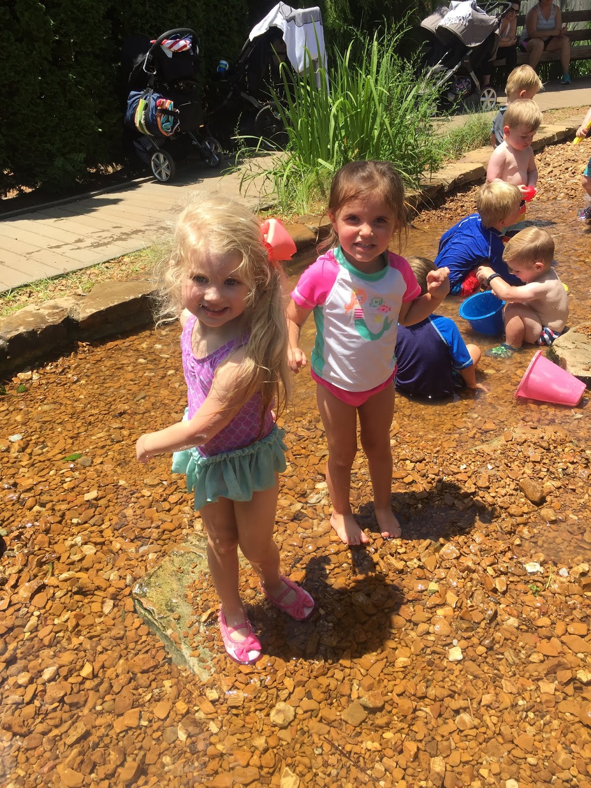 I’ve mentioned before that our membership to the Huntsville Botanical Garden is one of our favorite Christmas gifts, because it allows us to enjoy this place several times a year. (We had actually planned to go yesterday but the weather didn’t cooperate!) Our girls love the childrens’ garden, especially the little wading pond and pop jets. I love it too because parents can sit along the edge with their feet in the water and cool down as well! Be sure to bring a change of clothes, because they will get soaked!