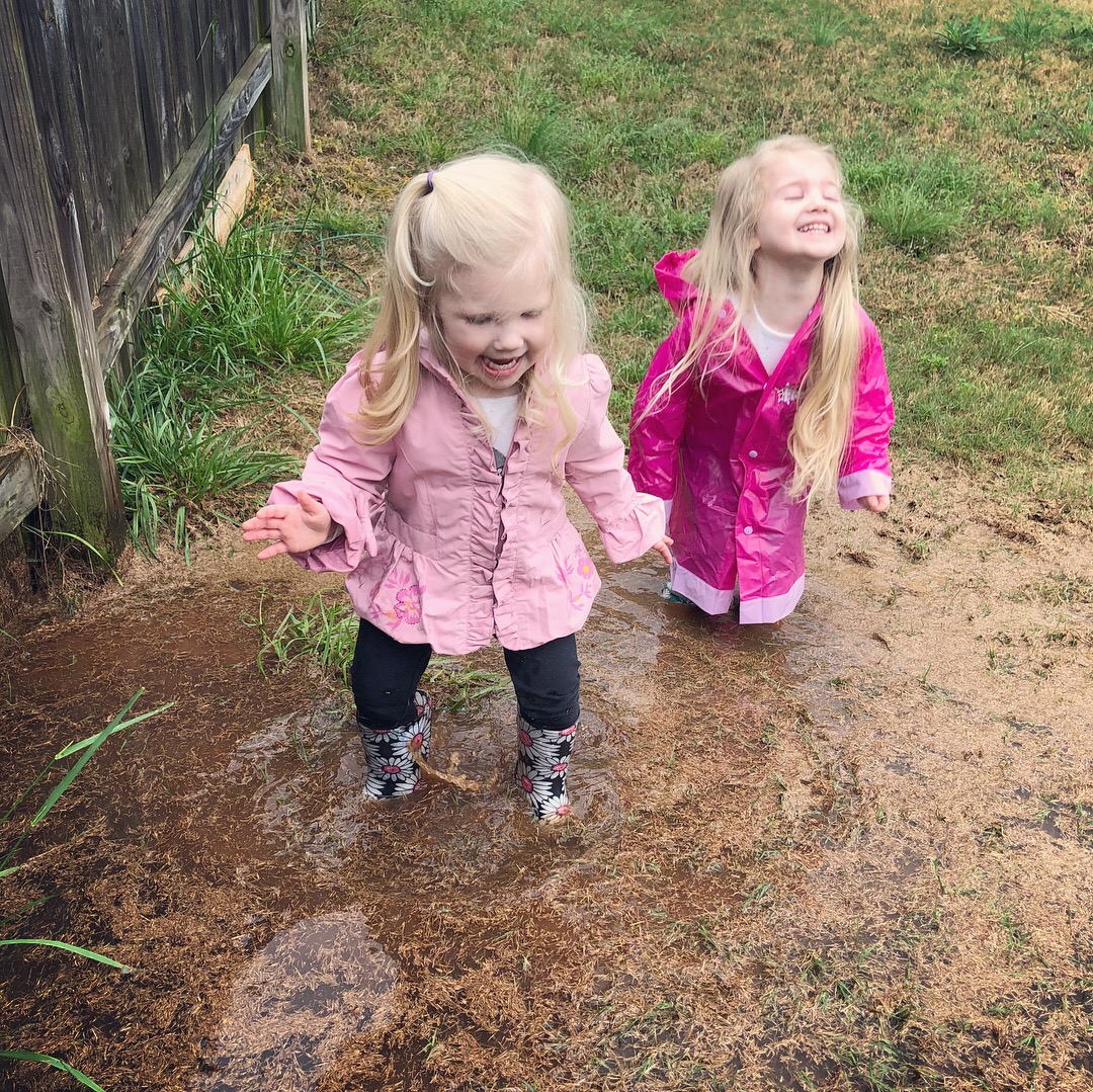 There’s not much more fun to a little kid than playing in summer rain and splashing in rain puddles. We splashed around in puddles a few weeks ago but it wasn’t raining very hard. I plan to let them get soaking wet and play in the rain at some point this summer. The joy on their faces is heart melting!