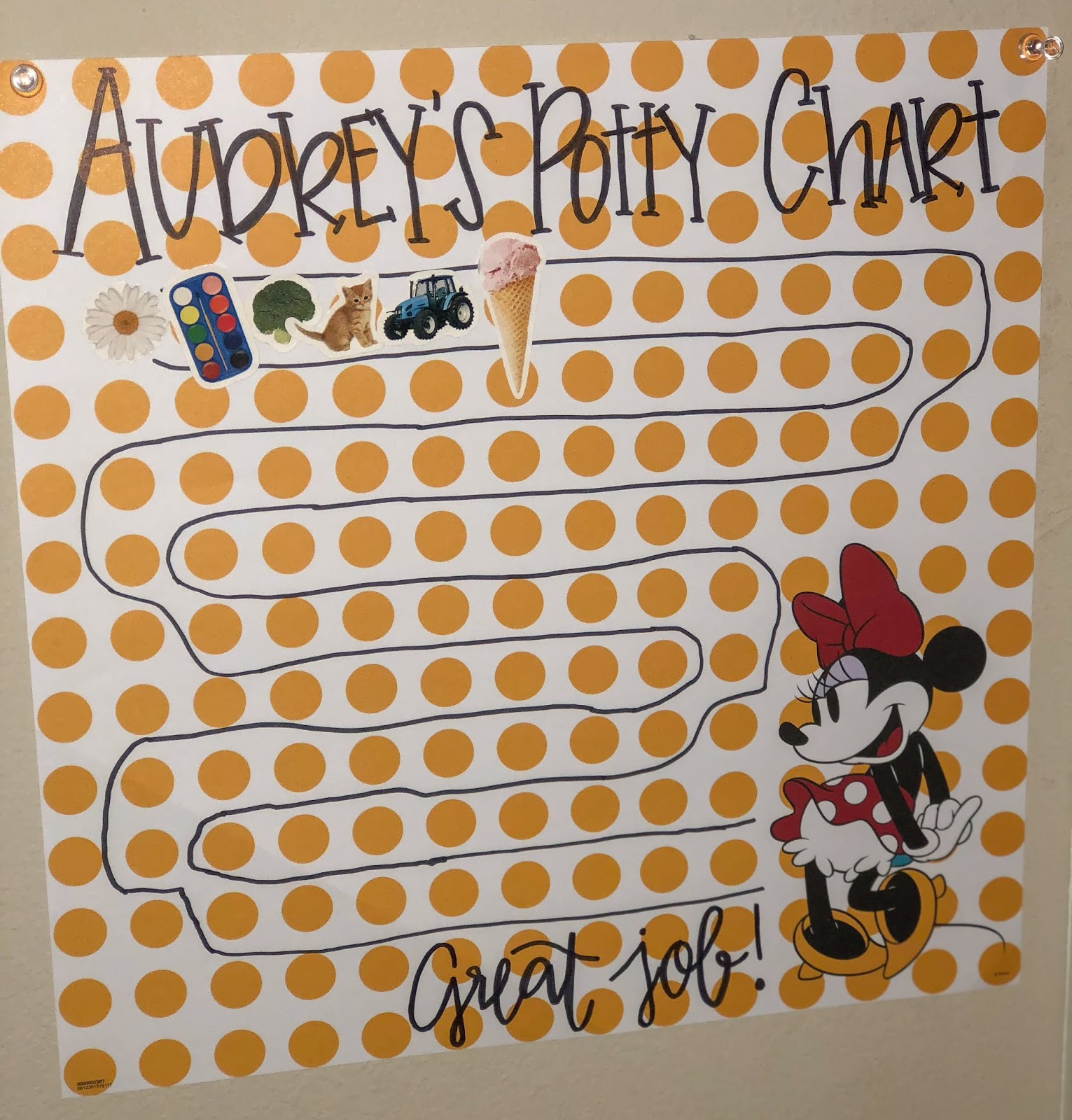 – I let her pick out her favorite piece of scrapbook paper and made her a “potty chart.” Each time she goes potty, she gets a sticker (2 for going #2) and once it’s filled up, she will get to pick out a special treat.