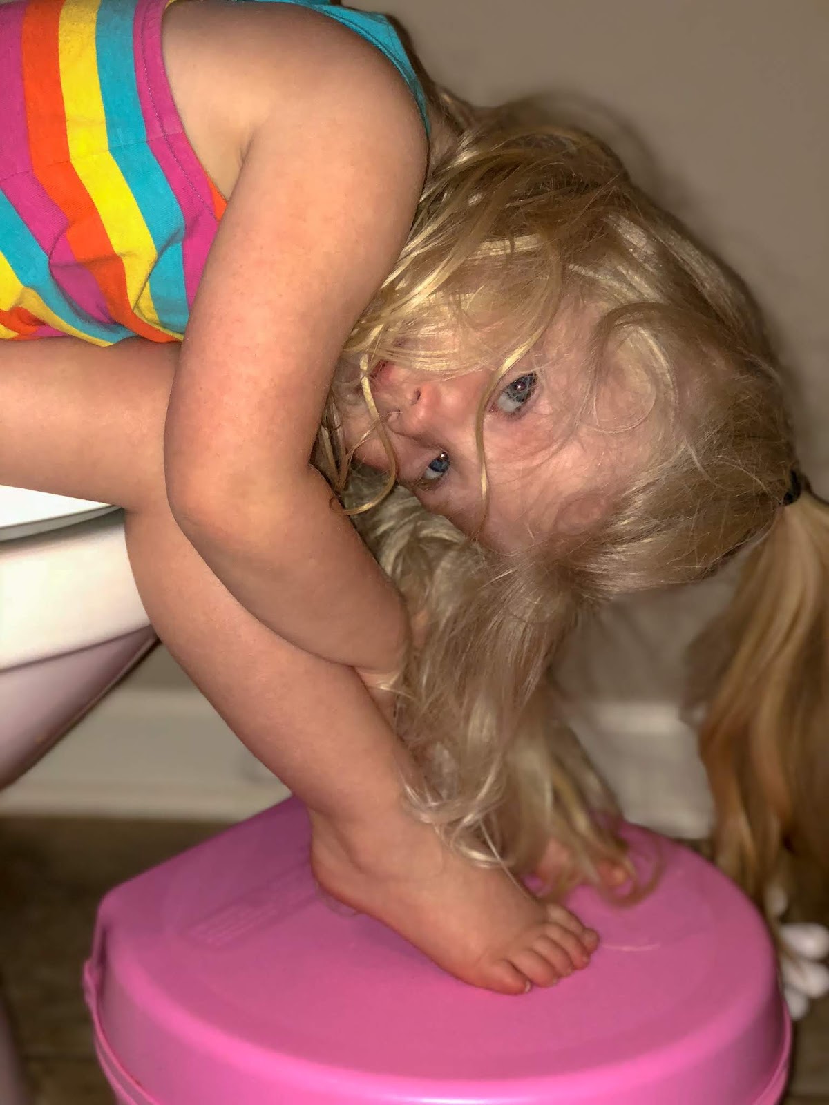 Friday morning, Raley had a hair appointment in Athens. I ended up letting Audrey wear panties since I knew we were just going there and then back home. I told her that they had suckers at the hair salon so when we got there she told me she needed to go potty. She went potty, but honestly I think she only told me she needed to go so that she could get a sucker. But a win is a win! That morning before we left for the hair appointment, I had told her to go potty, so she sat down and ended up going #2. She was so proud of herself, she wanted to call Daddy and tell him about it! I was proud that she did it without me telling her “try to push the poo poo out.”