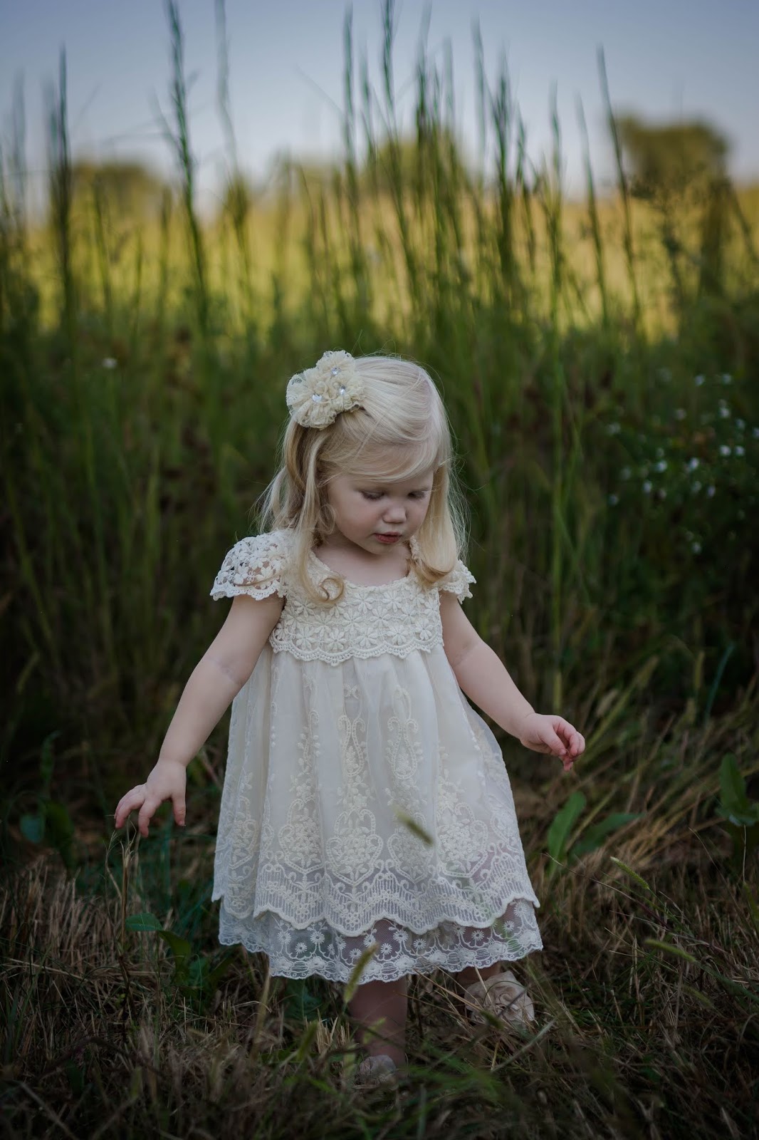 These sweet little rustic lace dresses are by Mrs. Dazzle on Etsy. Audrey is wearing a 1 and Raley is wearing a 3. (They both still fit them and they are 2 and 4 now so they run a tad big) They have worn these so many times since we had these photos taken so we have definitely got our money’s worth out of them.