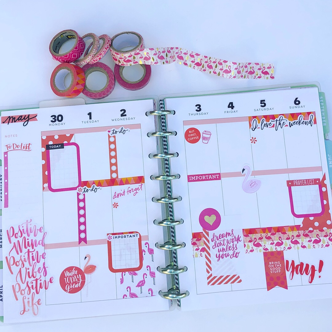 The planner I have is a Happy Planner, which can be found at Michael’s, Hobby Lobby and JoAnn’s. They carry the stickers and accessories too. I’ve found that typically Michael’s has more selection than Hobby Lobby does though.